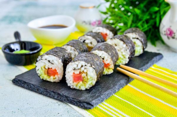 2 Изменить состав Показать состав Порций: Круглый рис — 1 стак.» /> 1 Вода — 2 стак.» /> 2 (4 листа) Нори — 4 гр» /> 4 Крабовые палочки — 130 гр» /> 130 Яйца — 2 шт.» /> 2 Огурцы — 1 шт.» /> 1 Кунжутное масло — 3 стол.л.» /> 3 (для жарки омлета) Растительное масло — 1 стол.л.» /> 1 Соль — по вкусу» /> по вкусу Таблица перевода объемных мер чайная ложка5 млдесертная ложка10 млстоловая ложка20 млстакан200 мл Нутриенты и энергетическая ценность состава рецепта На вес состава: Белки 14% 4 г Жиры 28% 8 г Углеводы 59% 17 г 161 ккал ГИ: 11 / 89 / 0
