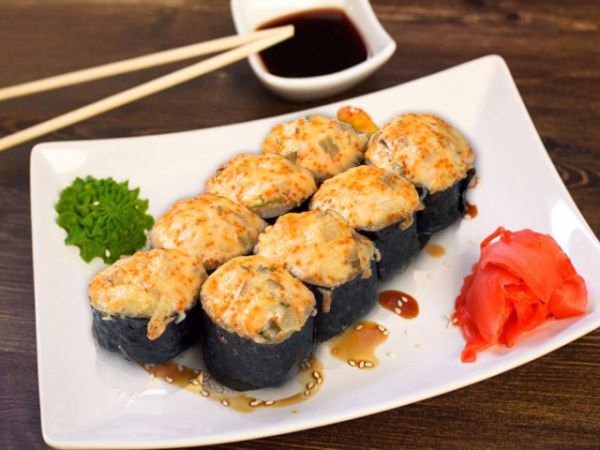 Подавайте роллы с соевым соусом, маринованным имбирем и васаби.