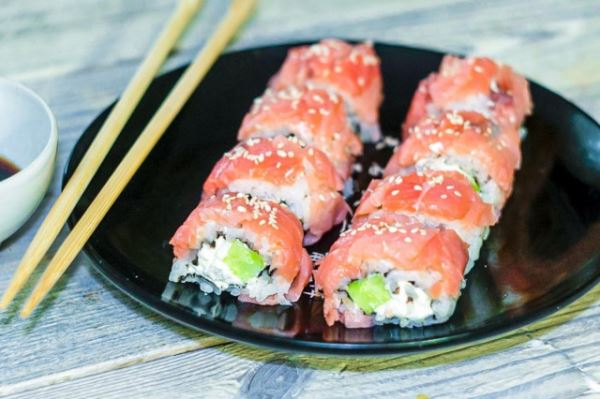 6 Изменить состав Показать состав Порций: (любая красная рыба, желательно слабосоленая) Лосось — 300 гр» /> 300 Сливочный сыр — 150 гр» /> 150 Огурцы — 1 шт.» /> 1 Авокадо — 1 шт.» /> 1 Лимонный сок — 1 чайн.л.» /> 1 Для риса: Круглый рис — 1 стак.» /> 1 Вода — 1.5 стак.» /> 1.5 (6%, можно взять 9% или любой другой по вкусу) Уксус — 1 стол.л.» /> 1 Сахар — 1 чайн.л.» /> 1 Соль — 0.25 чайн.л.» /> 0.25 (два листа) Нори — 2 гр» /> 2 Таблица перевода объемных мер чайная ложка5 млдесертная ложка10 млстоловая ложка20 млстакан200 мл Нутриенты и энергетическая ценность состава рецепта На вес состава: Белки 24% 8 г Жиры 30% 10 г Углеводы 45% 15 г 177 ккал ГИ: 7 / 93 / 0
